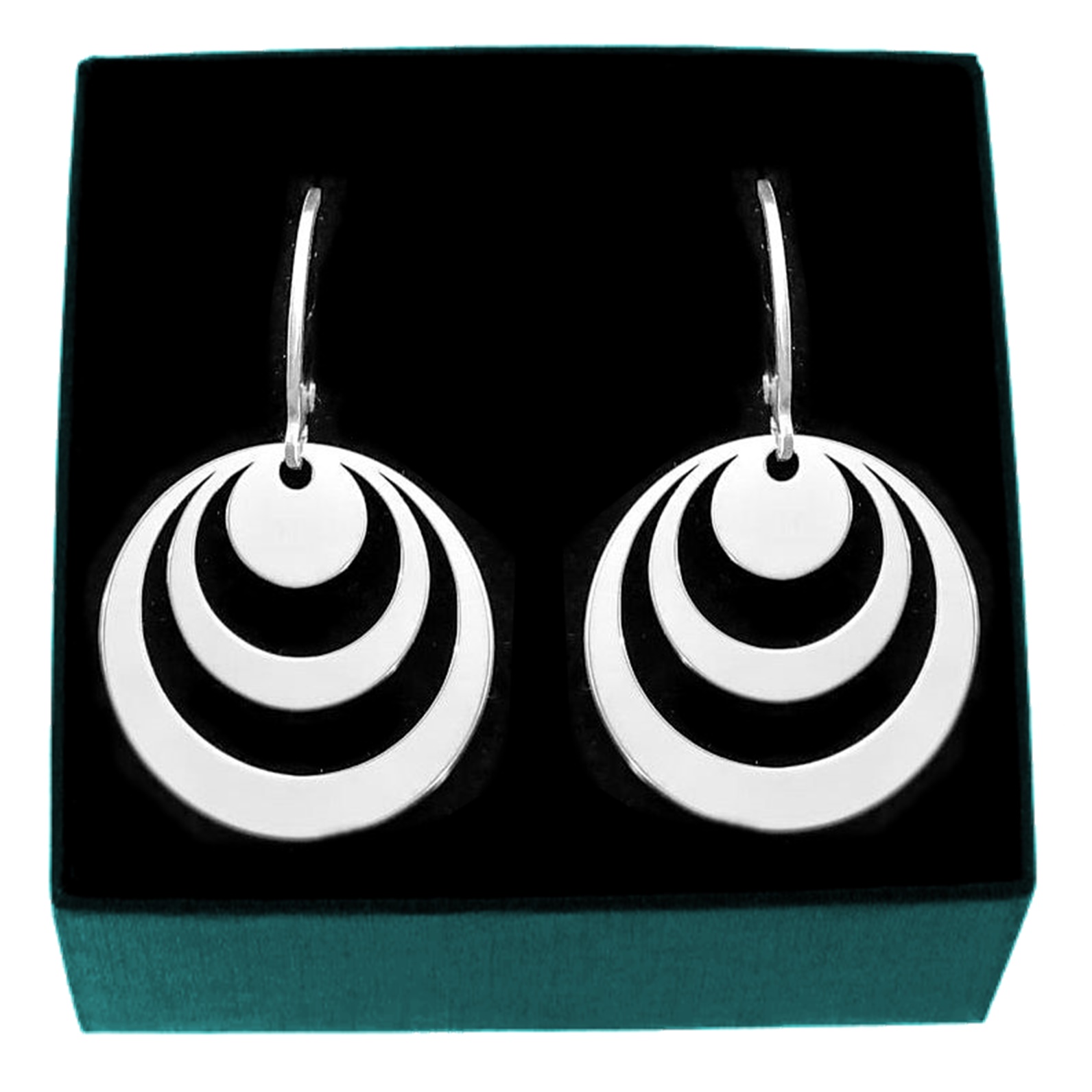 Oferujemy Państwu kolczyki na wygodnych, zamykanych biglach z zawieszkami w kształcie dużych kół ze zdobieniami. Kolczyki wykonane są w całości ze srebra próby 925.