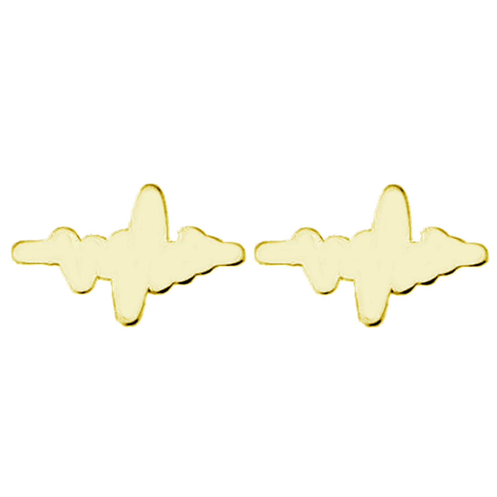 Kolczyki na wygodnych sztyftach w kształcie linii życia, wykonane w całości ze srebra próby 925 pokrytego 24 karatowym złotem.
