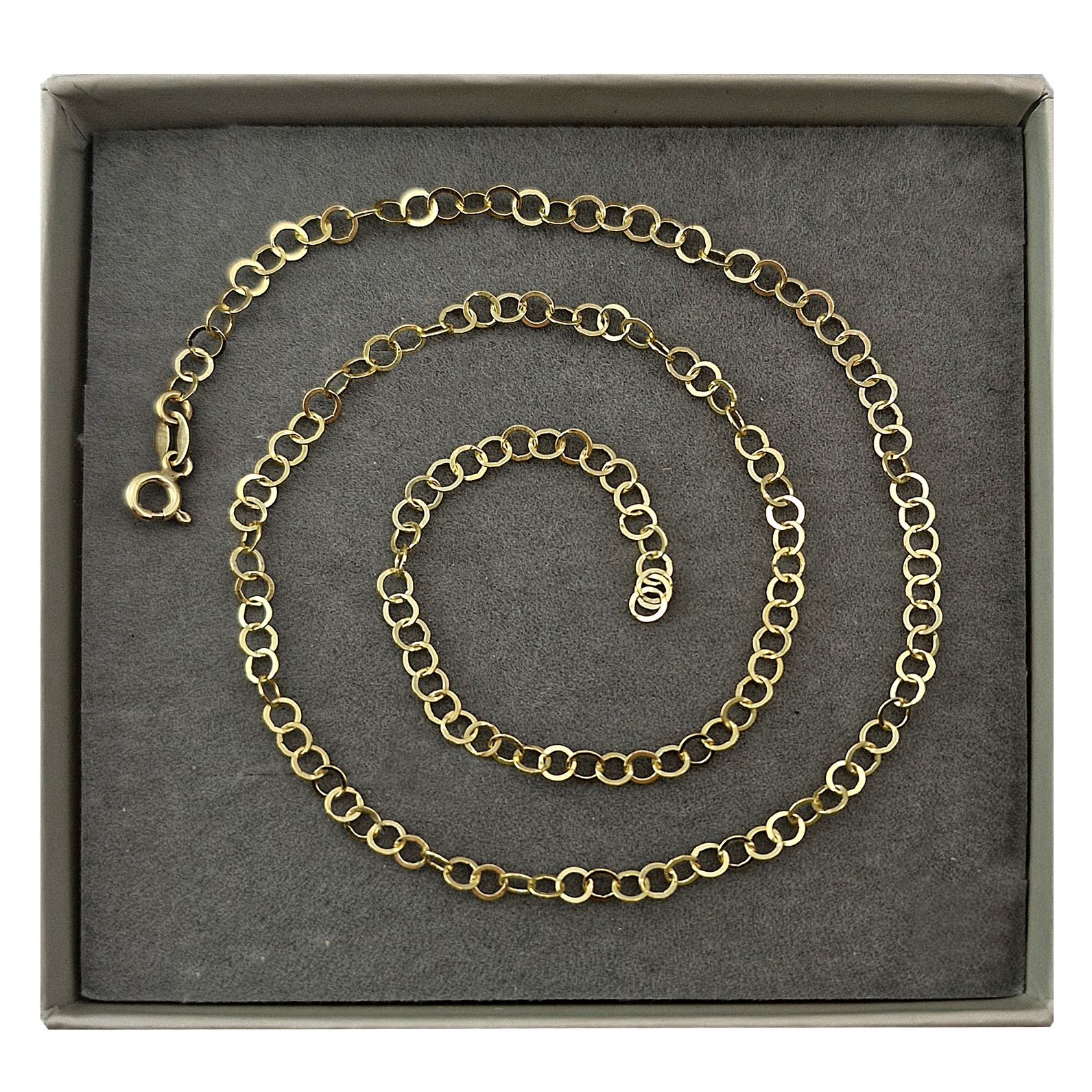 Oferujemy Państwu łańcuszek o pięknym, diamentowanym splocie, wykonany w całości ze srebra próby 925 pokrytego 24 karatowym złotem.
