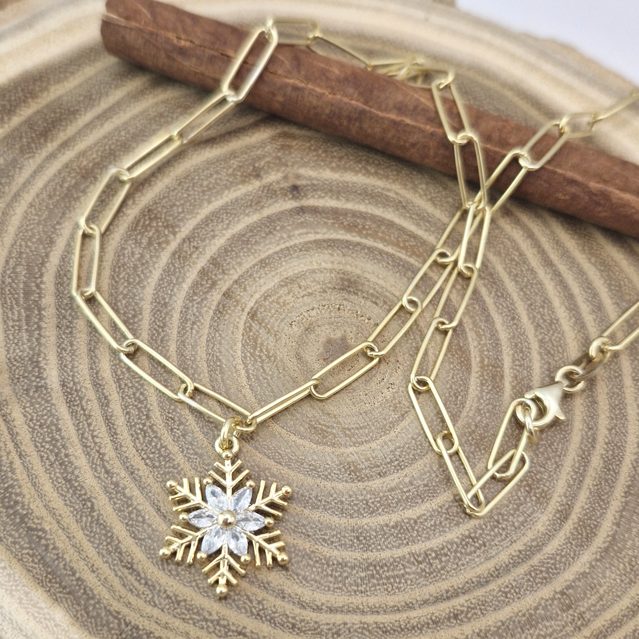 ⭐⭐⭐HIT SEZONU! MODNY NASZYJNIK SPINACZ Z ZAWIESZKĄ ŚNIEŻYNKĄ⭐⭐⭐