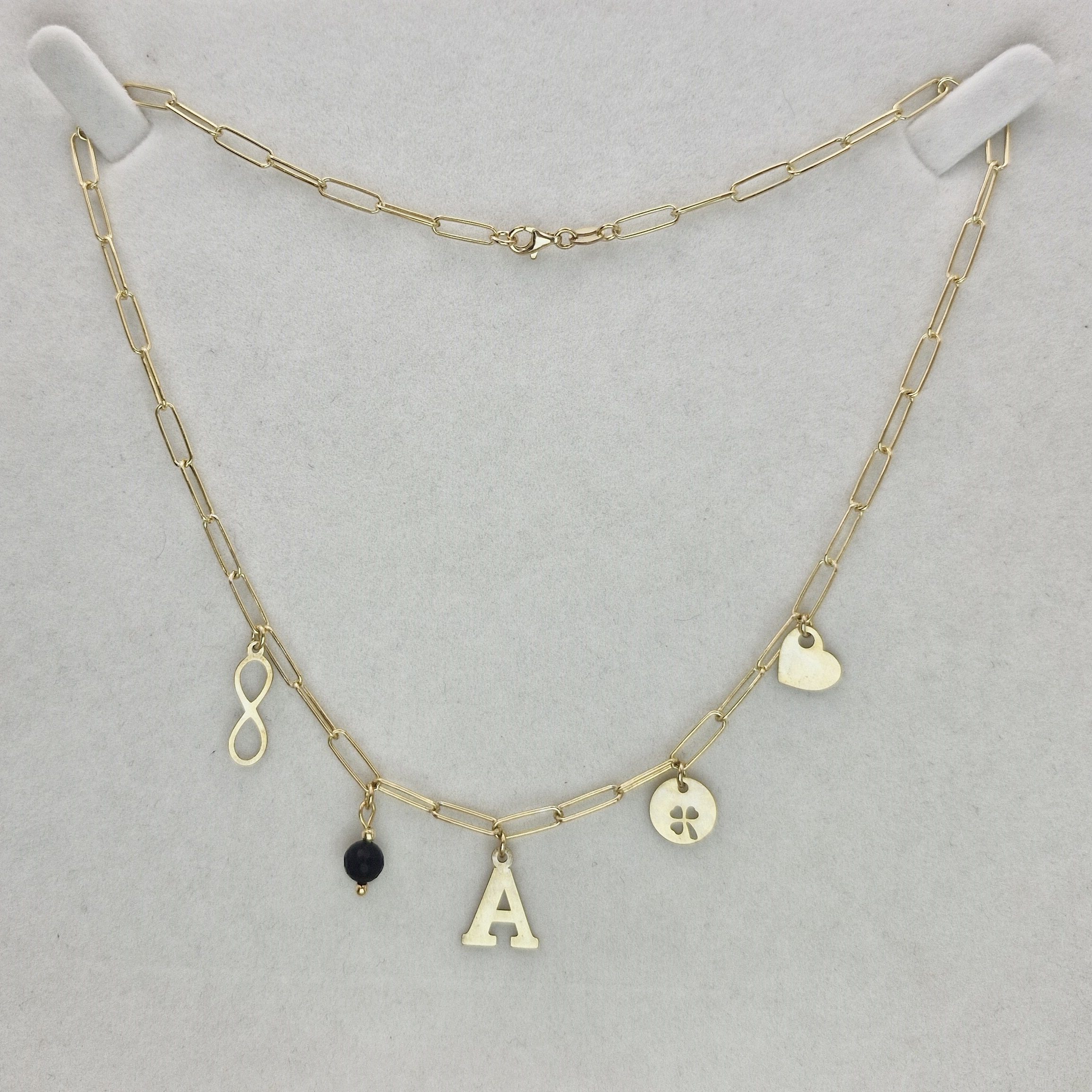 NASZYJNIK SPINACZ Z NATURALNYM KAMIENIEM - CZARNYM TURMALINEM I LITERKĄ❗❗❗
